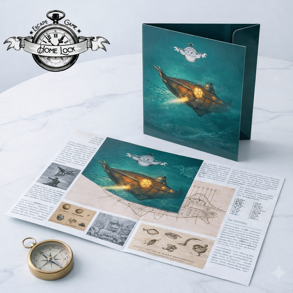 Plongez parmi les récifs pour retrouver le sous marin. Une fois à bord, vous devrez résoudre les énigmes cachées dans chaque pièce du Nautilus. Mais attention, bien des dangers rodent dans ces mers sombres… et l’oxygène commence à manquer !
